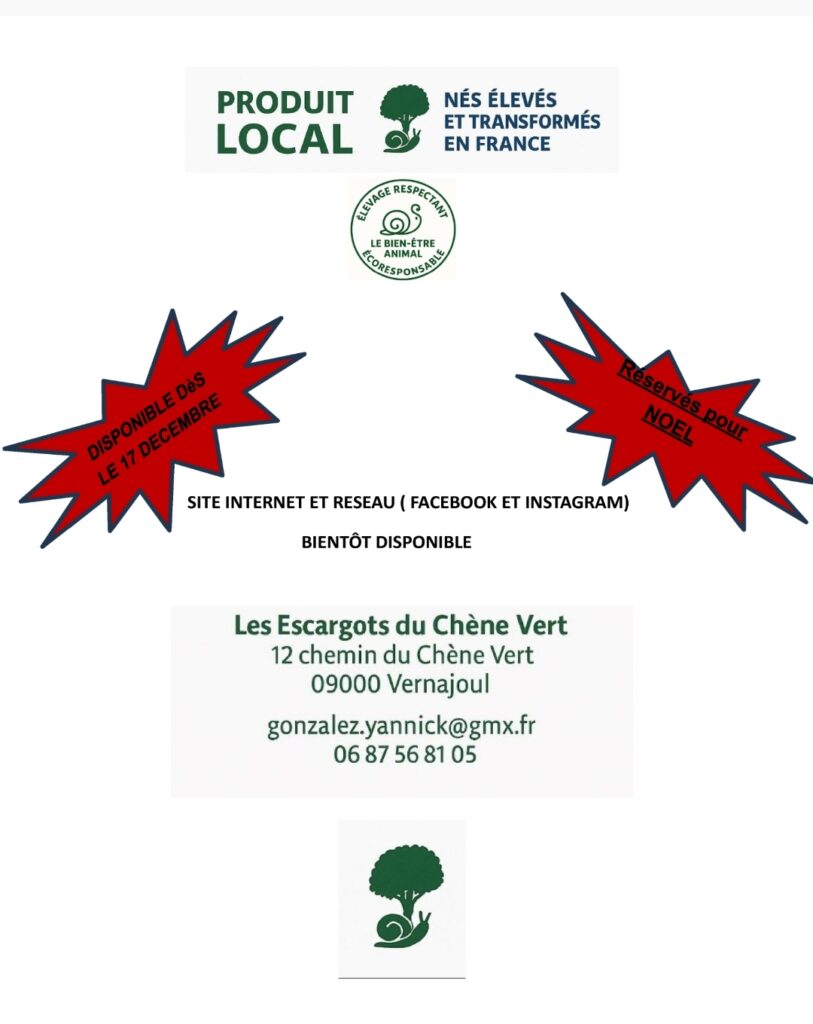 Sa production est disponible depuis le 17 décembre. Ci-joint ses coordonnées. Circuit court, du producteur au consommateur.