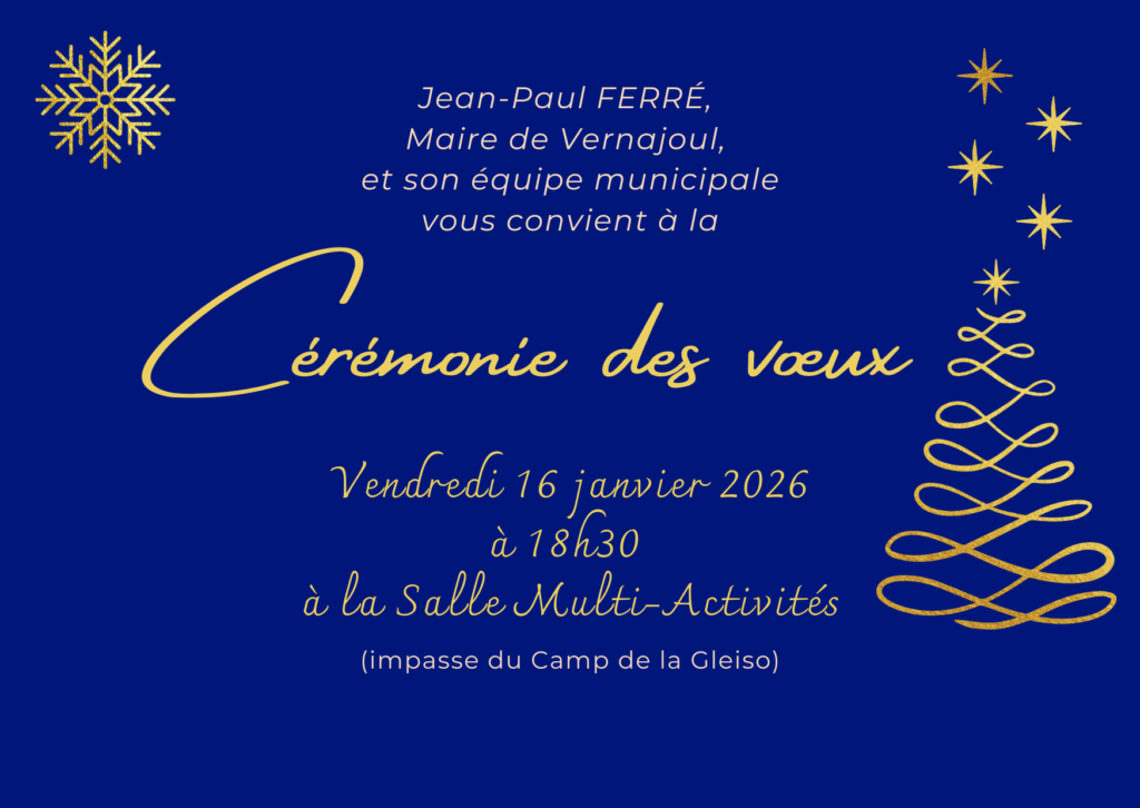 La cérémonie des vœux aura lieu le Vendredi 16 Janvier 2026 à 18h30
